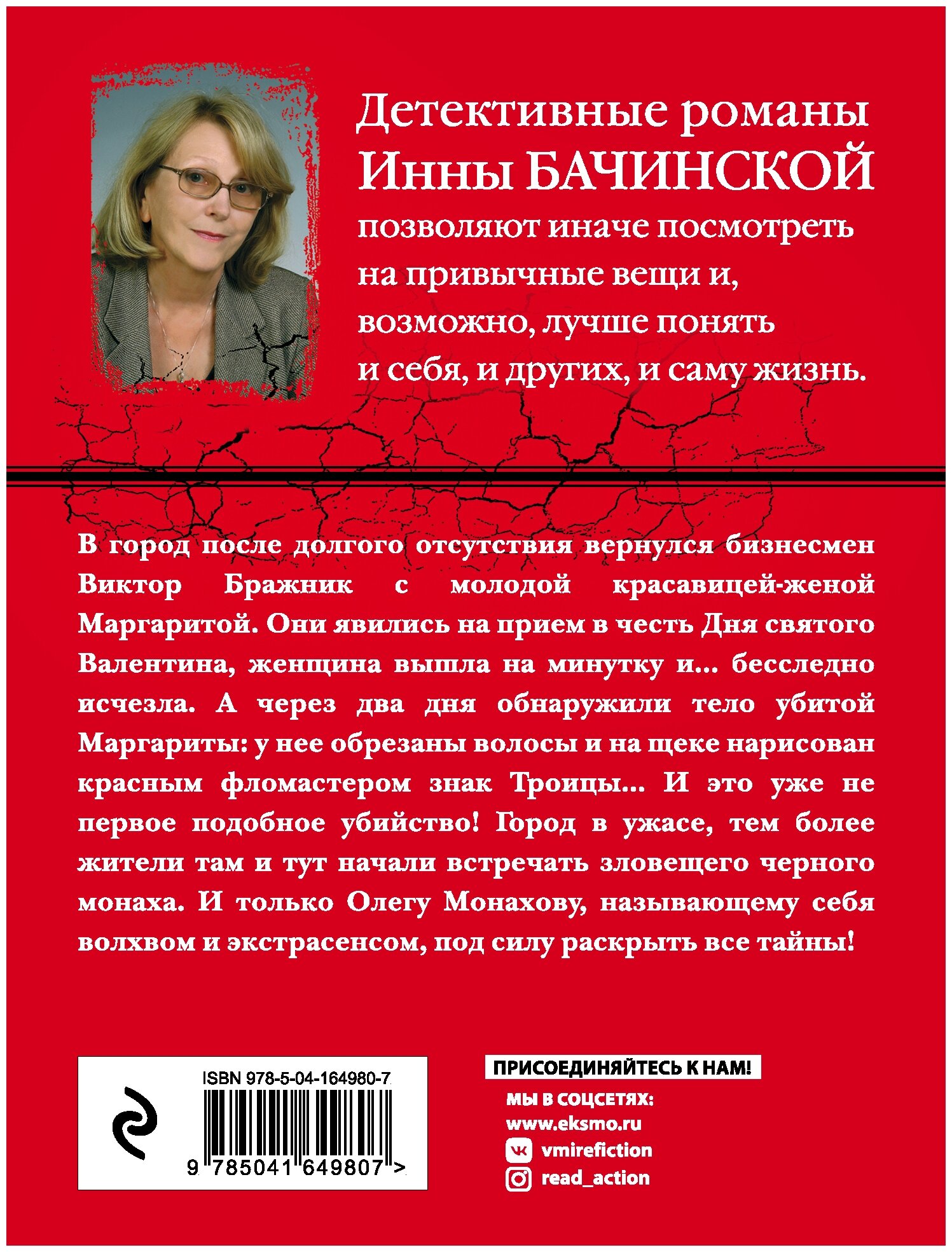 Городок 14 февраля потрясло страшное убийство - убита молодая женщина, приезжая, обрезана прядь волос, на щеке фломастером нарисован знак Троицы. Сатанисты? Ритуальное убийство? Или маньяк? Украшения не тронуты , сексуального насилия нет, как нет и сумочки с документами. Через пару дней находят ещё одну женщину - жену бизнесмена, который только вернулся в город после долгого отсутствия. Всё точно так же, как и с первой жертвой, только способ убийства другой - первая задушена, вторая умерла от удара по голове. Выяснилось, что умерла она тоже 14 февраля. Где держали тело? Мотив не отслеживается, так же как и преступник. Да ещё в городе появился некий чёрный монах, которого видели одновременно в разных местах города.