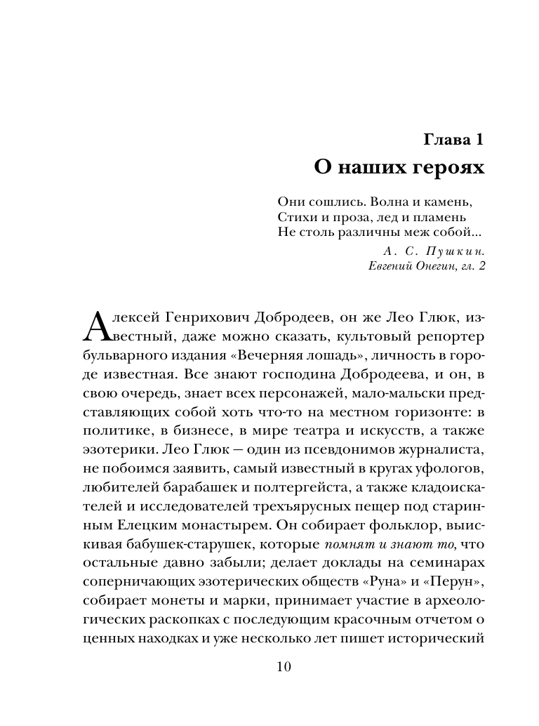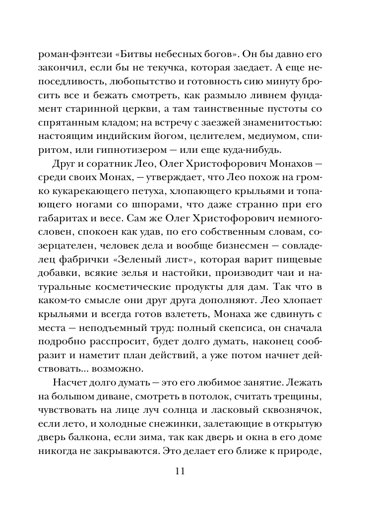 Действие в этой истории неспешное. Своё расследование ведут параллельно с полицией два друга - толстяка:Олег Монахов и Алексей Добродеев. Не первый раз кстати. Обычно успех им сопутствовал. Олег Монахов, по прозвищу Монах, предприниматель, мыслитель и немного волхв, как он себя называет. Леонид Добродеев журналист бульварного издания "Вечерняя лошадь", один из псевдонимов Лео Глюк. Личность известная, пишет на разные темы, везде свои люди.