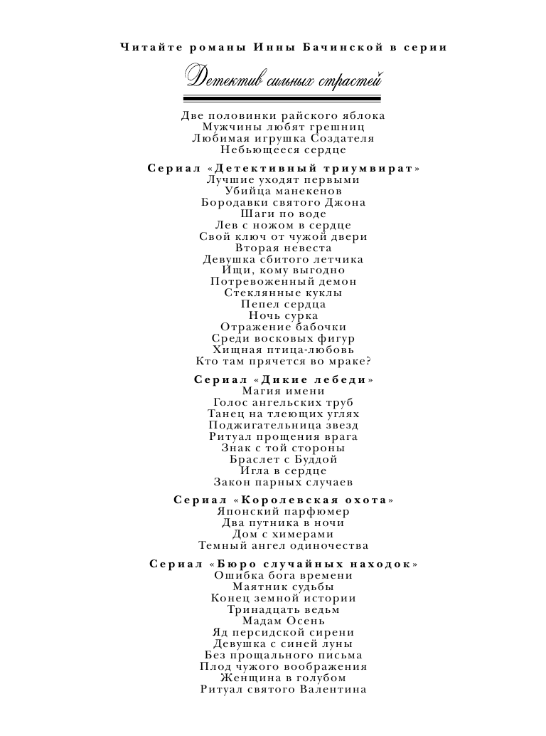 | Серия | Детектив сильных страстей. Романы Инны Бачинской |