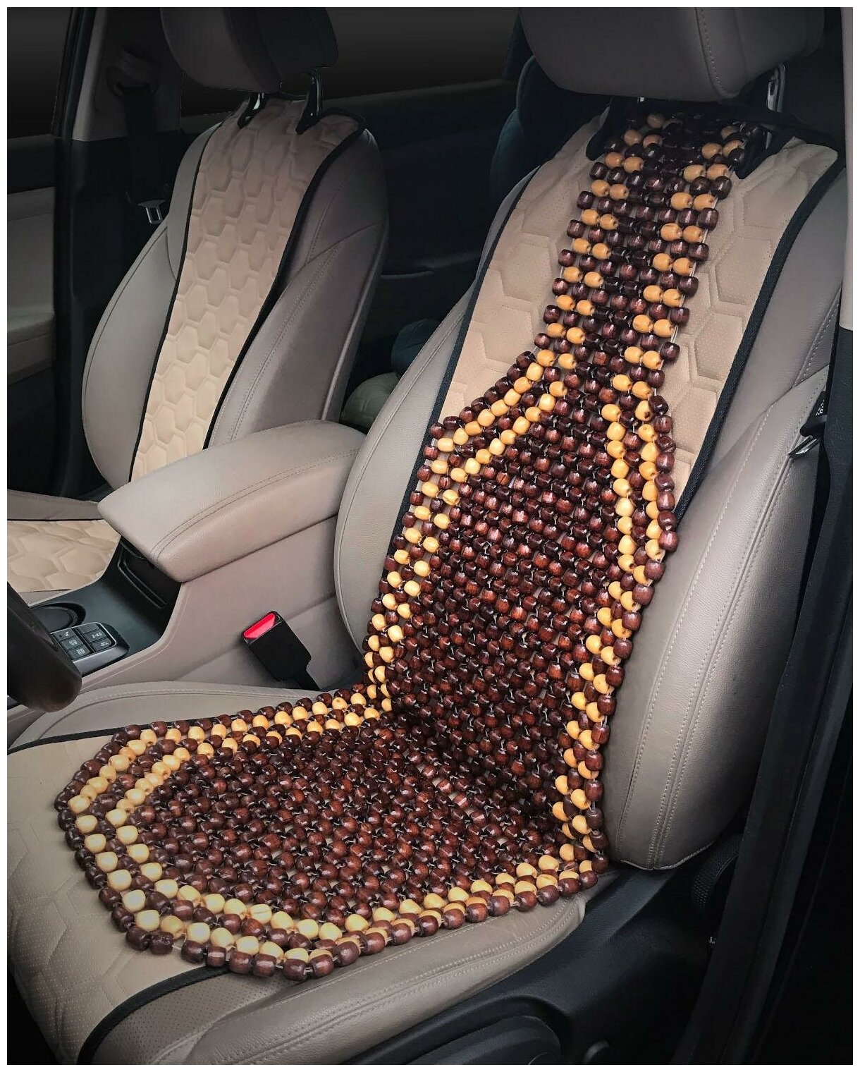 Массажная накидка на сиденье автомобиля легко крепится к сиденью любой марки автомобиля. Бусины накидки выполнены из эко бамбука и покрыты лаком. Использование изделия позволяет снять нагрузку и усталость с позвоночника, улучшить кровообращение, а также обеспечить хорошую вентиляцию тела.