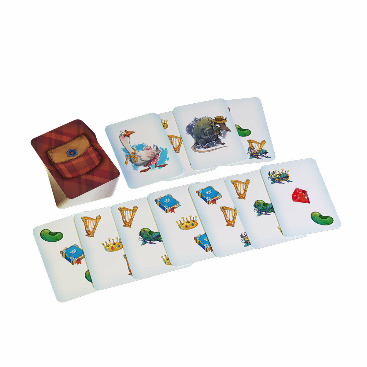 2. Тот, кто первым назовёт предмет, изображений которого больше на всех открытых карточках, забирает себе все открытые карты и складывает их рядом с собой. Если игрок ошибся, остальные игроки могут назвать свой вариант и победить в раунде. Карты Мистера Крыса и Гусыни меняют правила игр.