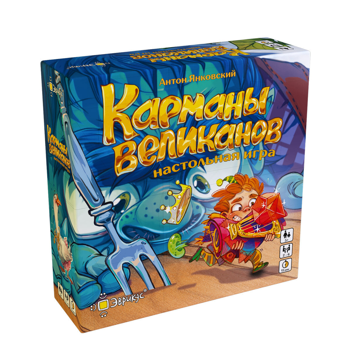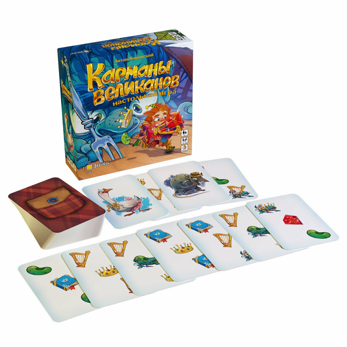 "" - это быстрая карточная игра на быстрый счёт и реакцию. Помогите великанам сосчитать предметы в их карманах. Но будьте внимательны, ведь за вами наблюдают хитрый Мистер Крыс и шумная Гусыня!