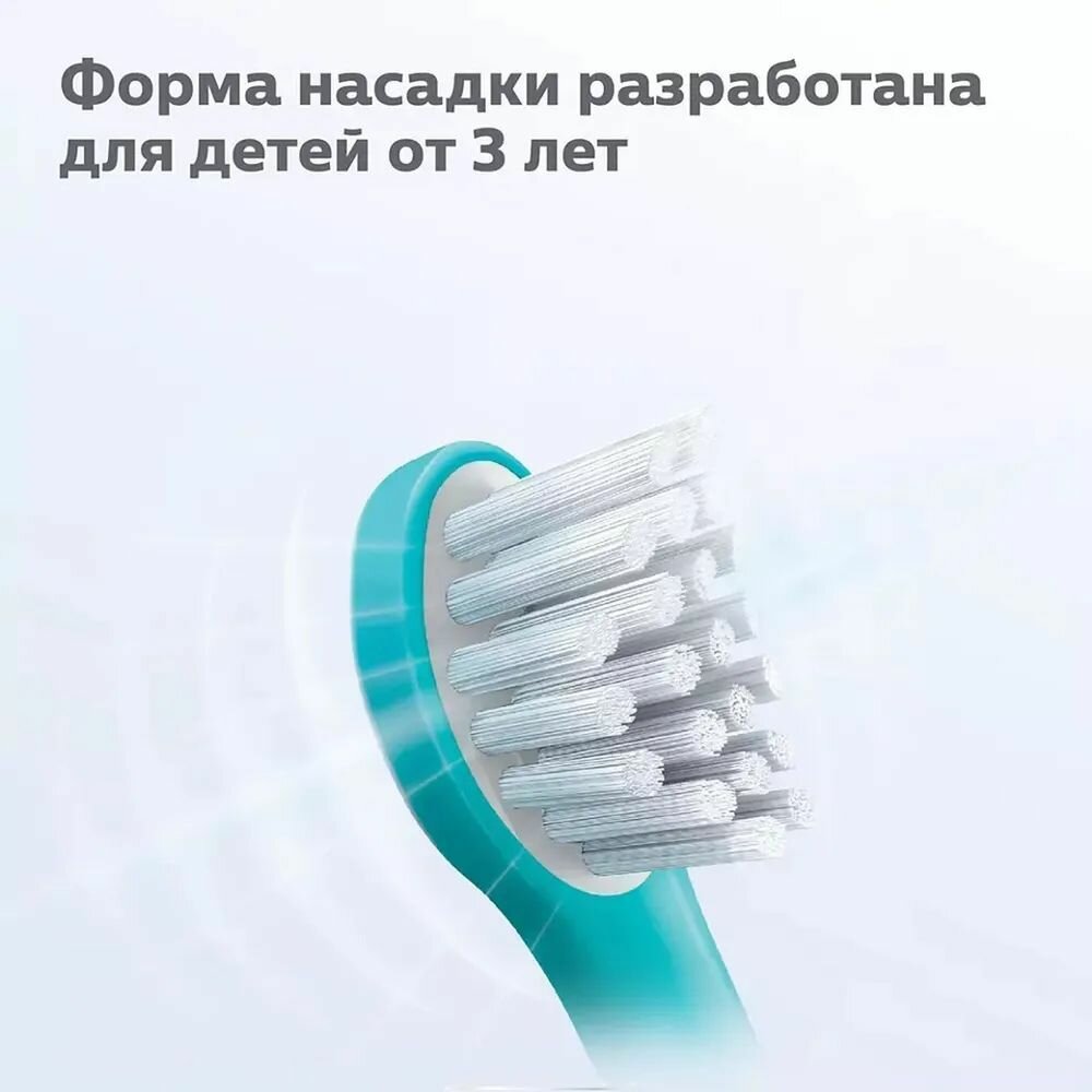 - Мягкие щетинки стандартной насадки для зубной щетки Philips Sonicare For Kids повторяют форму зубов детей в возрасте от 3 лет и деликатно очищают зубы. Прорезиненное обрамление задней части насадки защищает детские зубы от травмирования и обеспечивает комфорт во время чистки. Также доступны насадки большего размера для детей от 7 лет.
