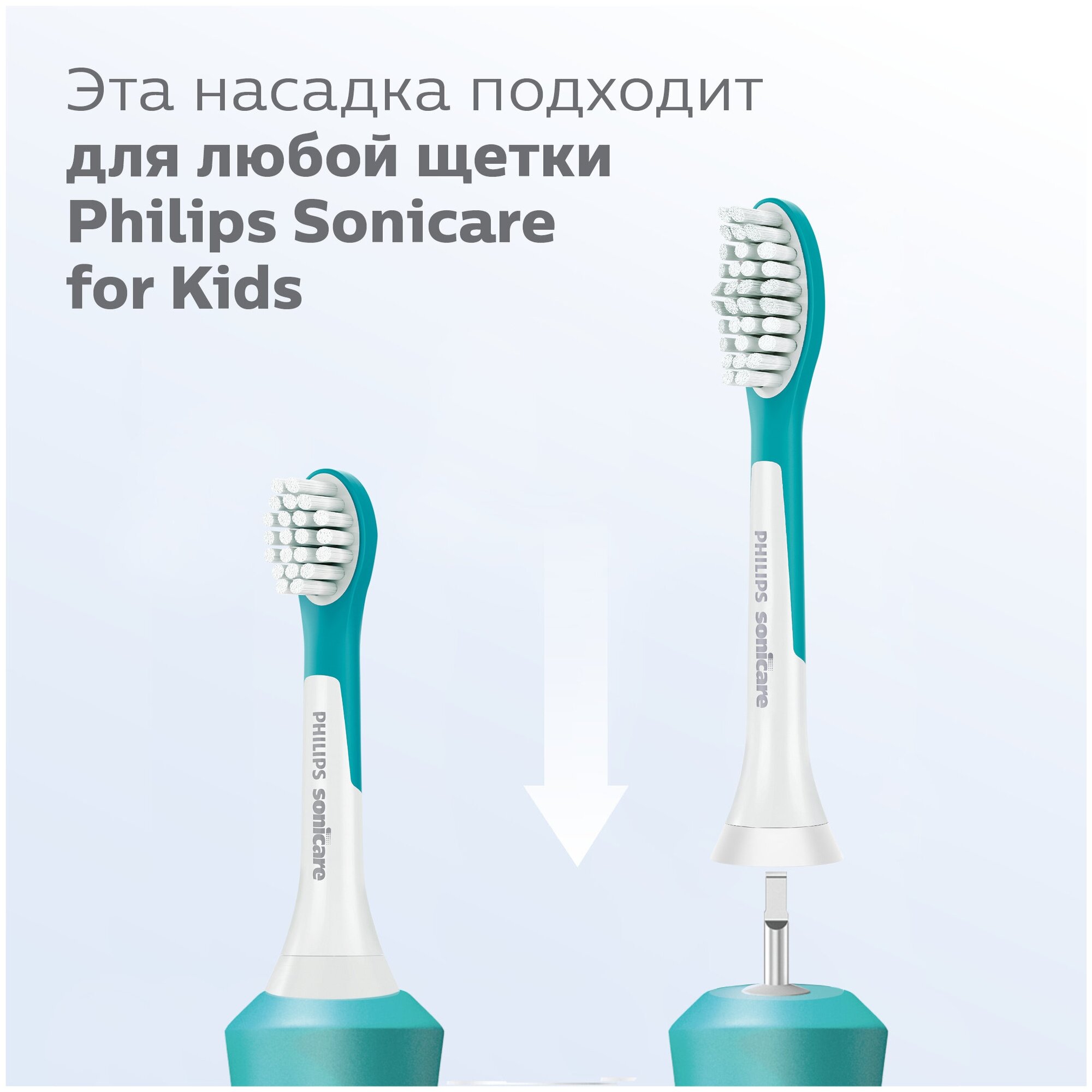 - Стандартная насадка для зубной щетки Philips Sonicare For Kids отличается особой формой и мягкостью щетинок, которые повторяют форму зубов детей от 7 лет и обеспечивают бережную чистку. Прорезиненная задняя часть насадки обеспечивает более безопасную и комфортную чистку.