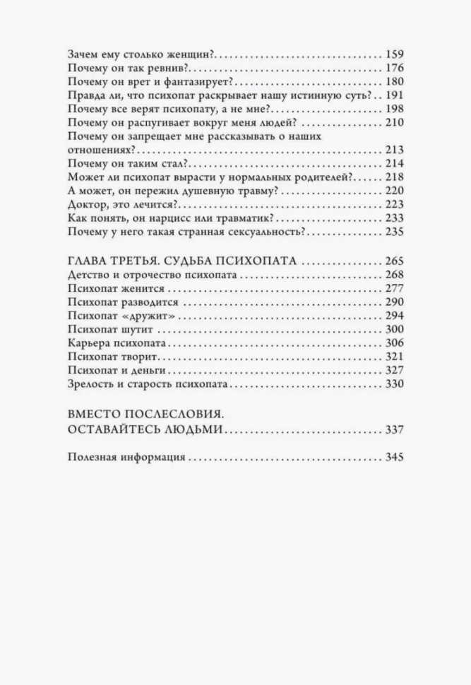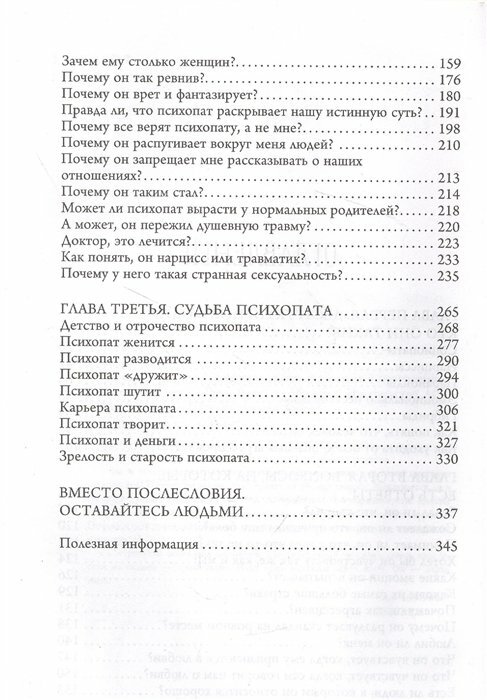 Хорошая книга, основанная на письмах автору. Простой язык, не сильно нагружающий тебя. Для понимания людей не плоха, но нужно понимать - если вы в отношениях с таким человеком и он решительно ничего не хочет делать с собой - не покупайте эту книгу, чтобы понять его и оправдать. Эти отношения не стоят ваших нервов и времени, не нужно Насиловать себя и искать оправдания ей/ему. Пожалуйста, берегите себя от этого.