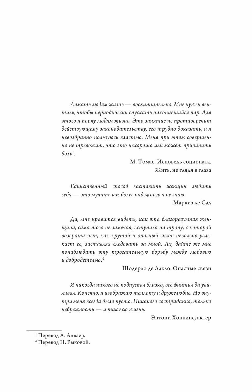 Читала и первую книгу, есть небольшие пересечения, но в целом книги абсолютно самостоятельные и не повторяют друг друга. С нетерпением жду третью часть. Горько понимать, что если человек такой , то никакая любовь, никакие старания его не изменят. Но чем раньше приходит это понимание, тем больше шансов избежать трагического финала, как в морально-психологическом, так, как бы ужасно это не было, и в физическом смысле. Книга помогает понять это, а так же то, что попав в сети такого человека ты ни в чем не виноват. Так сложилось. Большое спасибо автору, тема, увы очень актуальная и продолжает набирать обороты. Полезно к прочтению всем, так как вовремя распознать психопата не всегда просто.
