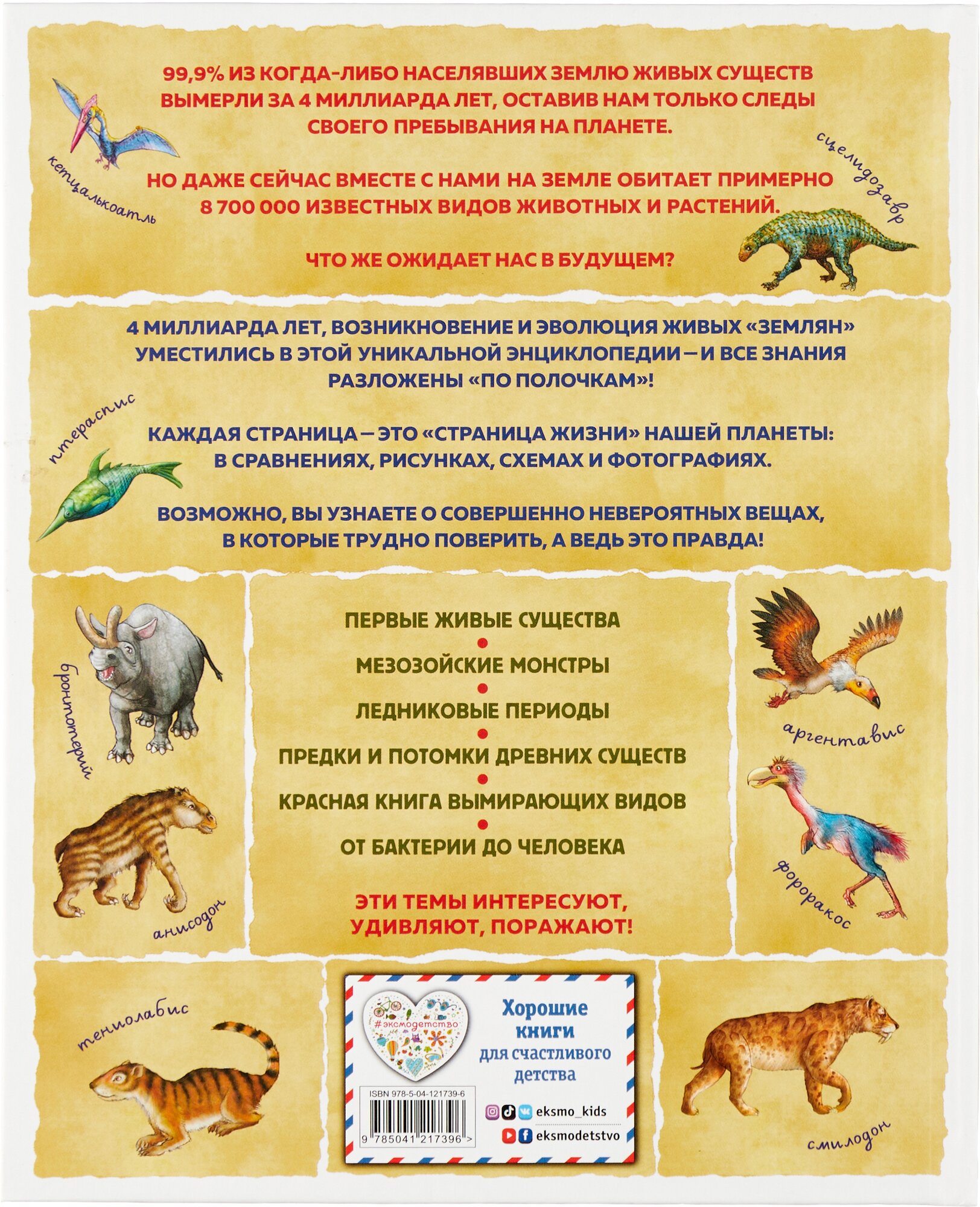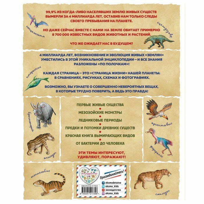 С этой книгой вам не придется ломать голову над объяснениями и формулировками: вся жизнь на Земле, которая существует 4 миллиарда лет, все важные вехи, от первых живых существ до мезозойских монстров, от ледниковых периодов до Красной книги вымирающих видов, от бактерий до человека, разложены «по полочкам» и хорошо запоминаются.