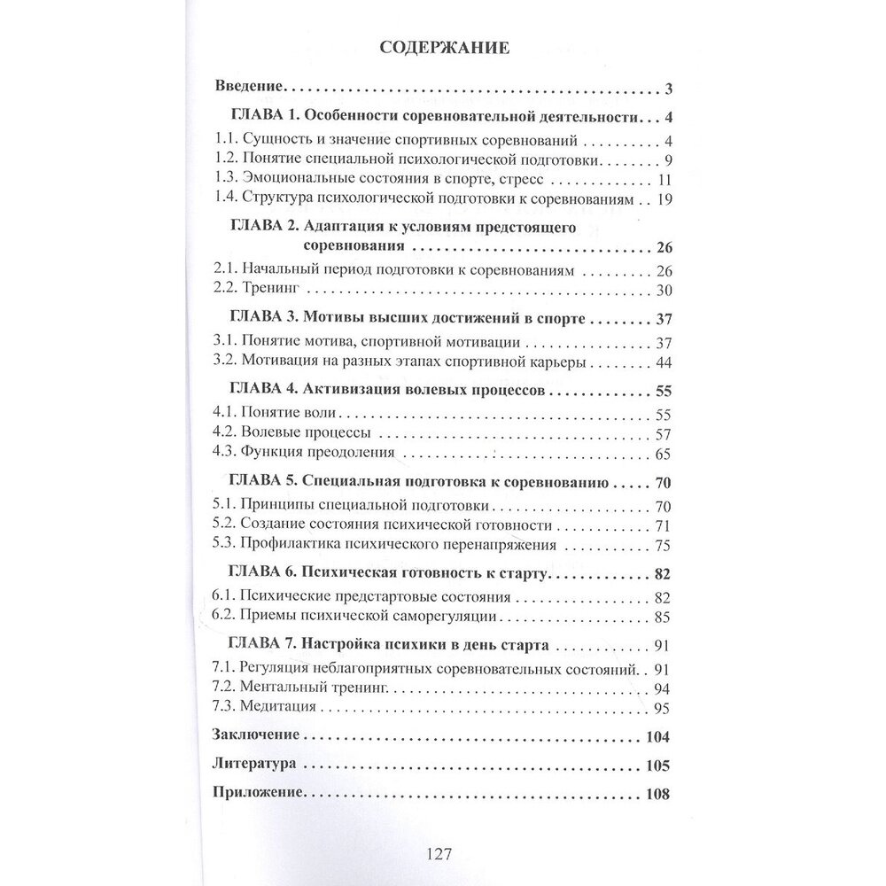 В книге предлагается временнaя структура психологической подготовки к спортивным состязаниям: за месяц до соревнований, за две-три недели, неделю, три-четыре дня, накануне старта и в день старта. Каждому из этих этапов присущи свои задачи и функции. Приводятся результаты научных исследований по содержанию каждого элемента структуры психологической подготовки к соревнованиям. Представлены разнообразные упражнения и приемы коррекции неблагоприятных эмоциональных состояний по каждому периоду подготовки к соревнованиям.