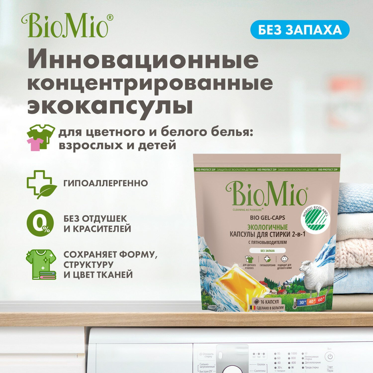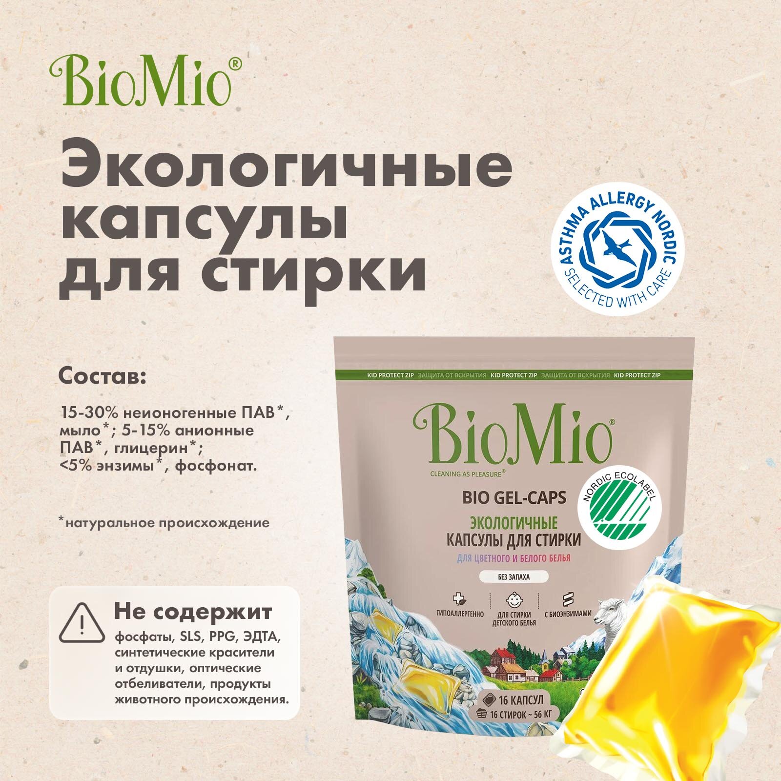 Капсулы для стирки BioMio Bio Gel-Caps Без запаха 16шт