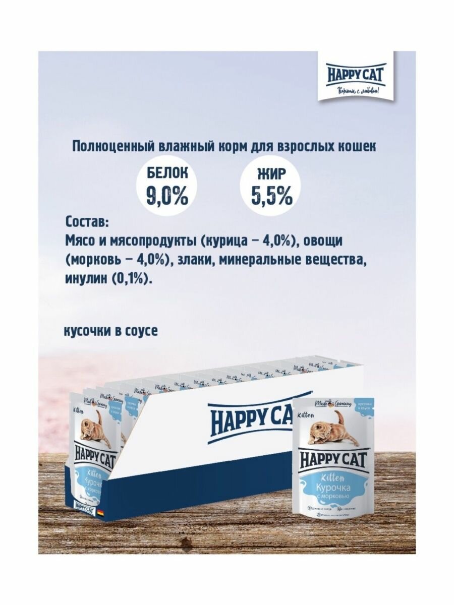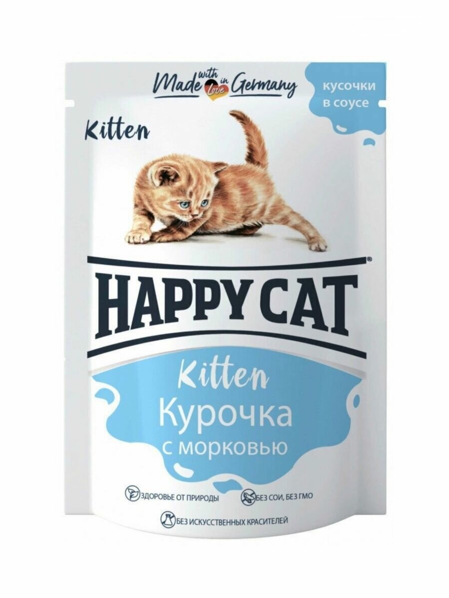 Влажный корм для кошек Happy Cat Kitten Курочка с морковью в соусе 100г