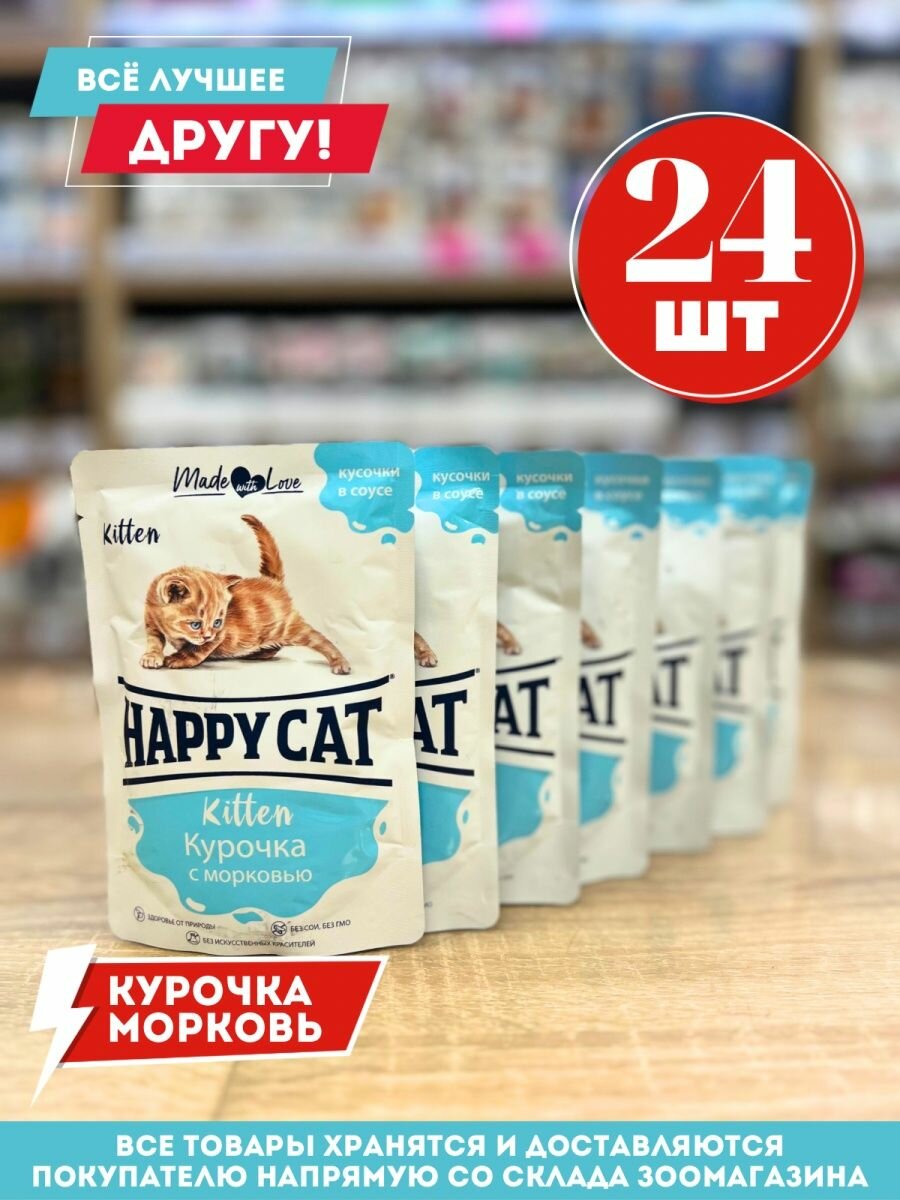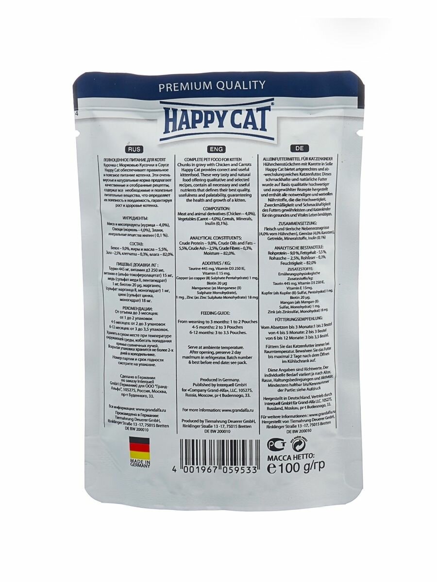 Сервис сравнения цен СкидкаГИД предлагает сравнить цены на товар «Влажный корм для кошек Happy Cat Kitten Курочка с морковью в соусе 100г»