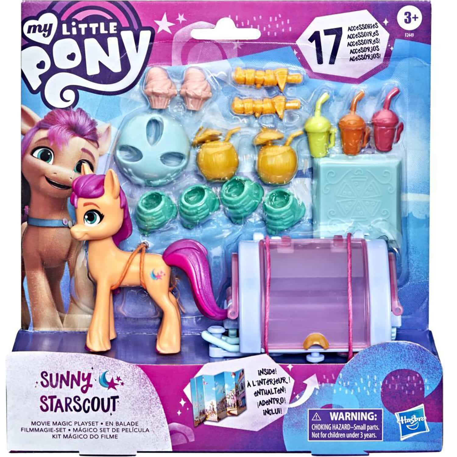 Маркировка: Hasbro. Встречайте Санни Старскаут, земную пони из городка Меритайм-Бэй! Санни любопытна, любит приключения и полна решимости сделать мир лучше. С этим волшебным игровым набором, вдохновленным мультфильмом “My Little Pony: Новое поколение”, дети смогут представить, как Санни катается по городу на роликах, доставляя коктейли.В наборе вы найдете фигурку пони высотой 8 см с формованной розовой гривой и знаком отличия на боку с виде падающей звезды. Придумать множество историй с участием Санни Старскаут помогут 17 аксессуаров! Наденьте на пони шлем и роликовые коньки, загрузите в тележку угощения и отправляйтесь в путь. Установите тематический фон и разыграйте сценку, как Санни продает коктейли со своей тележки всем желающим!В комплекте: 1 фигурка, 17 аксессуаров.
