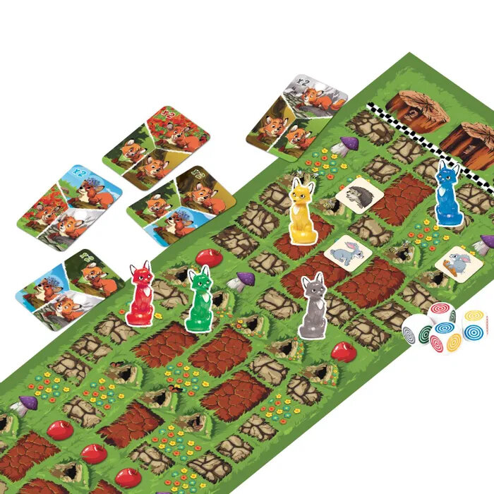 Игроку для победы нужно привести к финишу трёх лисичек из пяти. По пути лисички смогут поймать зайцев и эти зайцы принесут победные очки игроку. Игроки бросают на стол 4 кубика с цветными гранями и двигают лисичек выпавшего цвета. В игре можно варьировать уровень конкурентного взаимодействия, а новые механики перемещения и смены дорожек бегуньями порадуют, как знатоков «Гонок ёжиков», так и новых игроков.