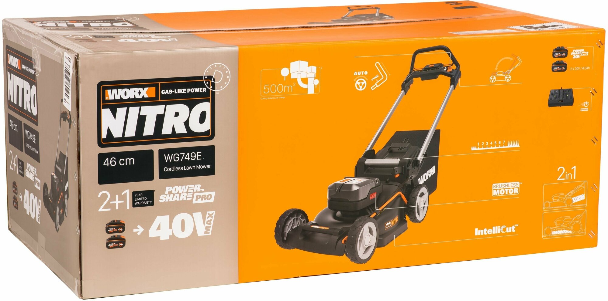 Газонокосилка аккумуляторная Worx WG749E Nitro +2 АКБ и ЗУ