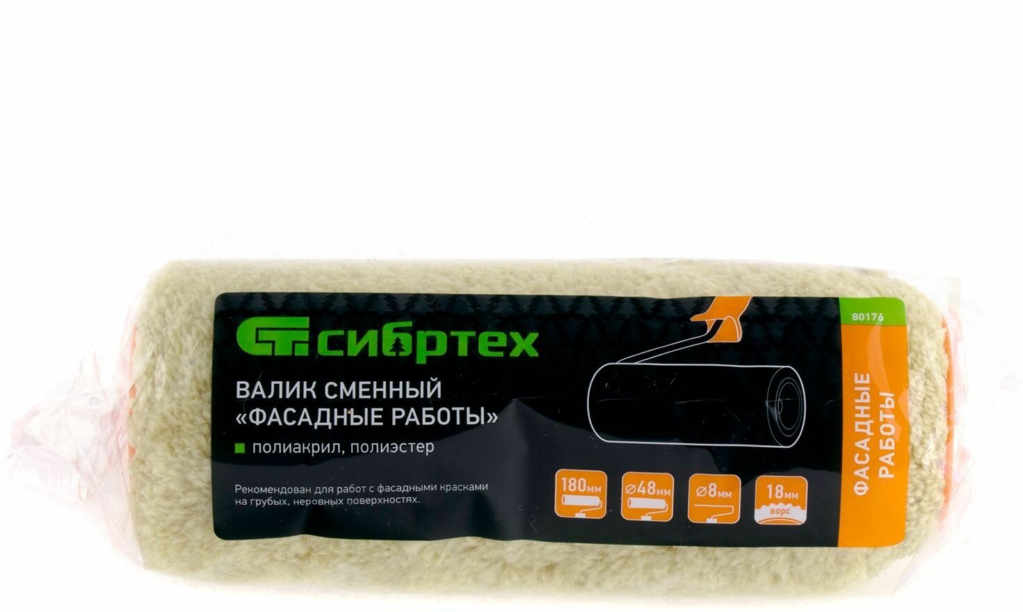 Валик сменный для краски Сибртех Фасадные работы полиакрил, полиэстер 180 мм