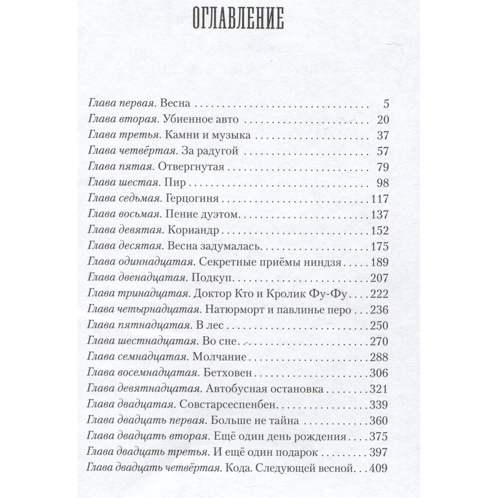 Весна - время пробуждений, сюрпризов и тайн. Сюрприз: почти-что-одиннадцатилетняя Бетти узнаёт, что она орхидея на ромашковой лужайке. И тут же - вот чего мы от неё никак не ожидали! - открывает собственный бизнес. И знакомится с Герцогиней и Кориандром. А тайны, тайны... да, с тайнами бывает трудно, так что хочется от них спрятаться, исчезнуть и никого не видеть. Но тепло, любовь и верность, как и всегда в жизни, - может быть, помогут? И, может быть, даже спасут?