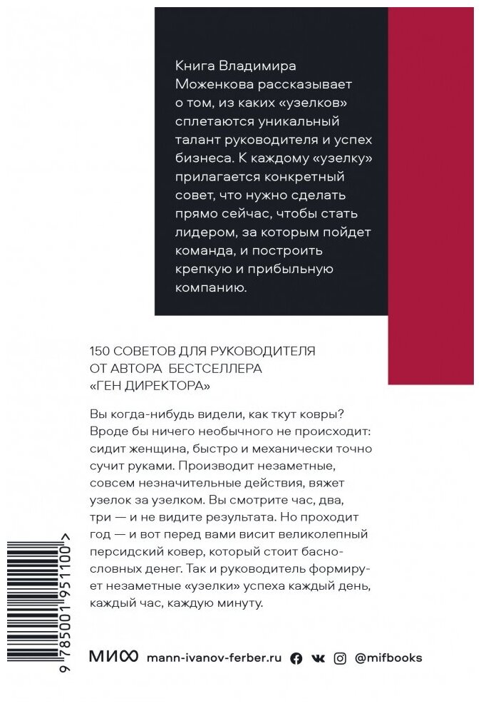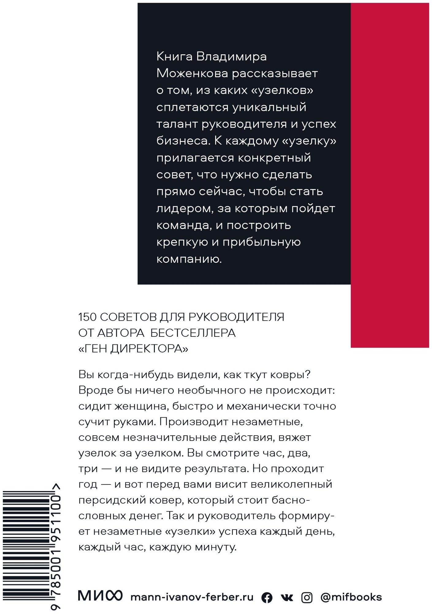 Эта книга рассказывает о том, из каких "узелков" сплетается уникальный талант руководителя и успех бизнеса. К каждому "узелку" прилагается конкретный совет, что нужно сделать прямо сейчас, чтобы стать лидером, за которым пойдет команда, и построить крепкую и прибыльную компанию.