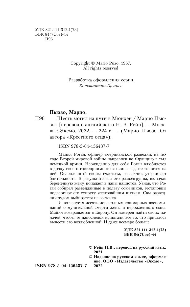 Шесть могил на пути в Мюнхен (Марио Пьюзо); Эксмо, Редакция 1, 2022