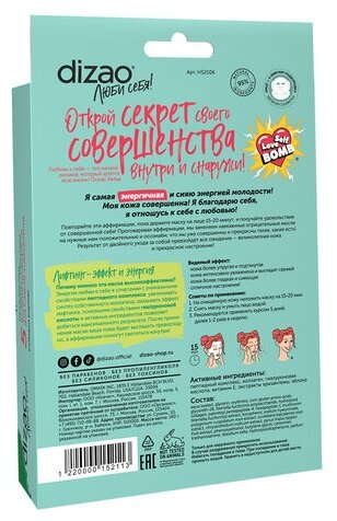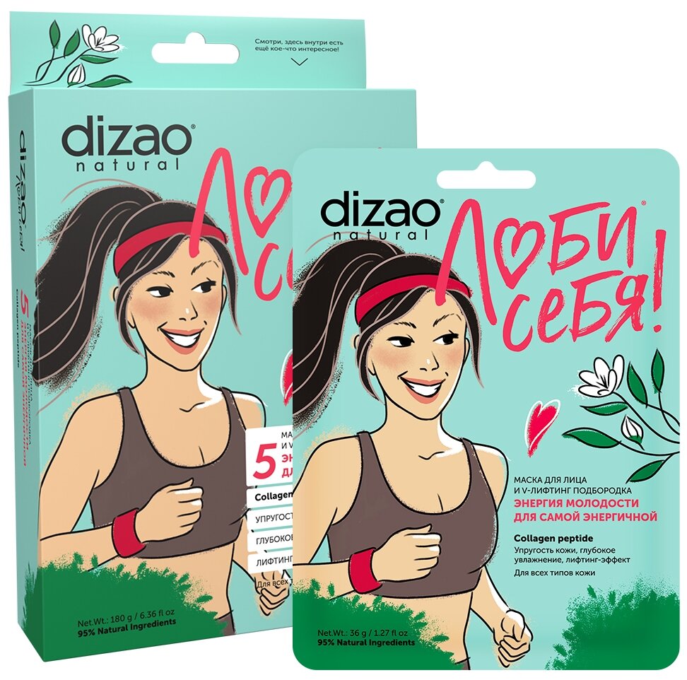 Маска для лица и V-лифтинг подбородка Энергия молодости Collagen Peptide Люби Себя Dizao/Дизао 5шт DMASK INC (2093234)