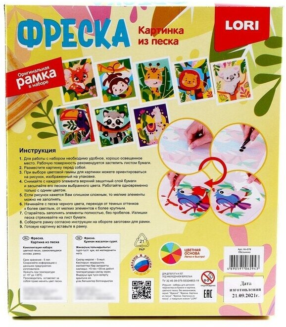 Набор предназначен для изготовления картинки из песка. Занятия с данным набором развивают внимание, способствуют развитию мелкой моторики рук, воспитывают усидчивость.