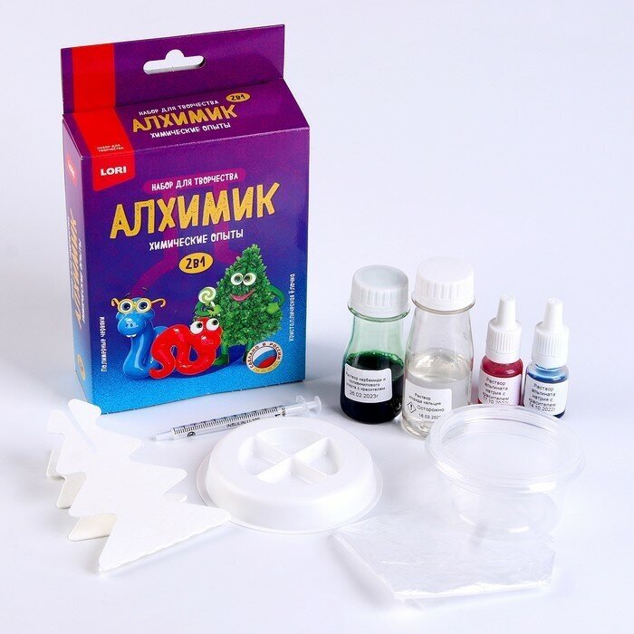 Игровой набор Lori Химические опыты 2в1 Полимерные червяки и Кристаллическая елочка