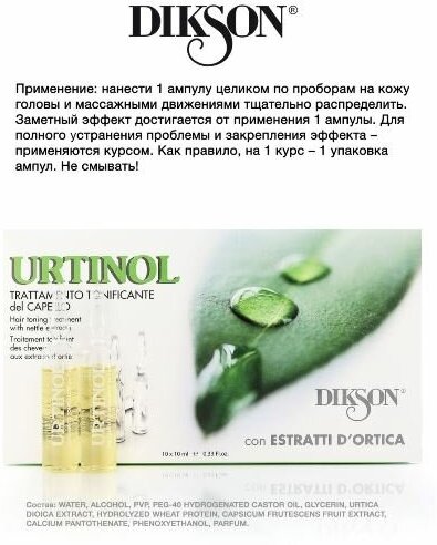 Dikson Urtinol Тонизирующее противосеборейное ампульное средство с экстрактом крапивы 10х10 мл (Dikson ) (DKL1130)
