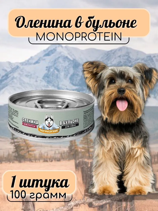 «Оленина в бульоне» - это мясной консервированный влажный корм для собак премиум класса.