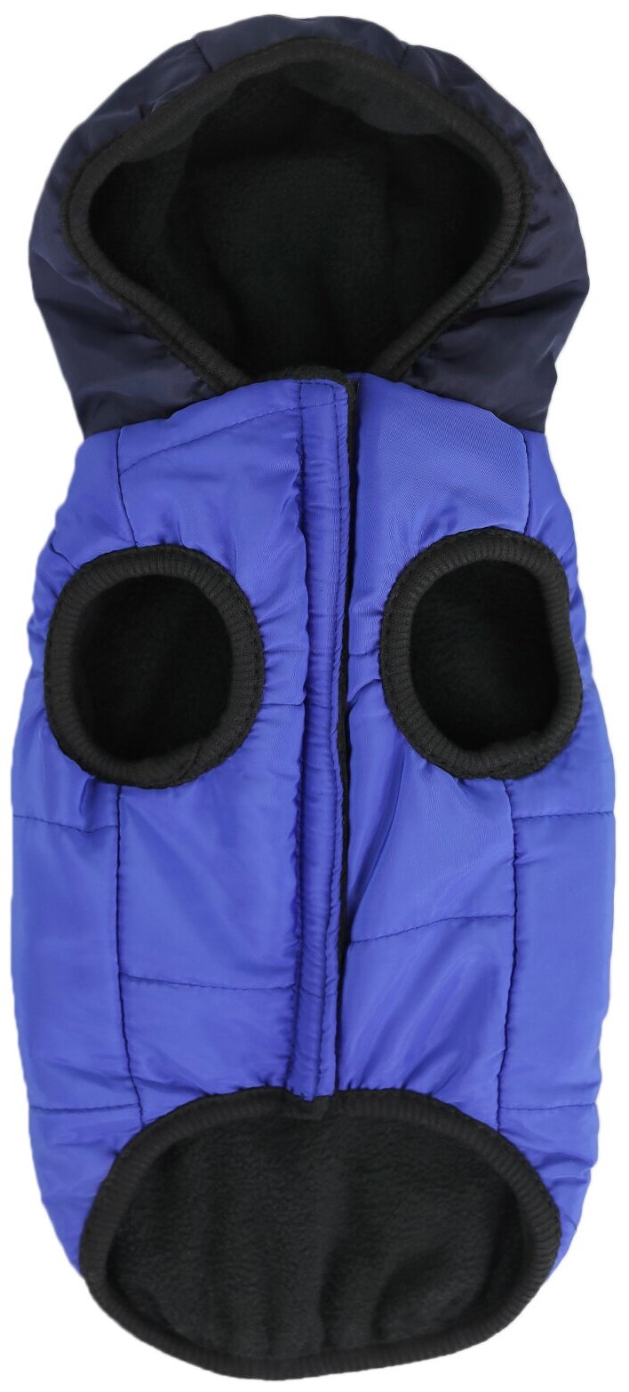 Теплая жилетка, попона, одежда для животных, для собак с подкладом из флиса. С теплым капюшоном, защищающим от ветра. Крепления - липучки. На спинке изделия прошито специальное отверстие для закрепления шлейки к ошейнику питомца. Капюшон можно надеть на питомца или, при необходимости, пристегнуть к пуговице на спинке жилетки. Размер изделия - S. Обхват шеи - 32 см, обхват груди - 40 см, длина спинки - 30 см.