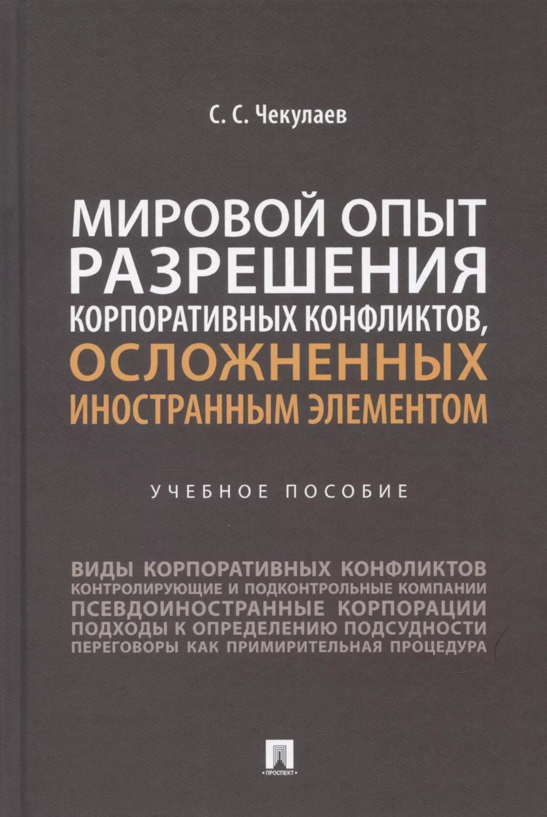 Мировой опыт разрешения корпоративных конфликтов осложненных иностранным элементом. Учебное пособие (Чекулаев Сергей Сергеевич); Проспект, 2022