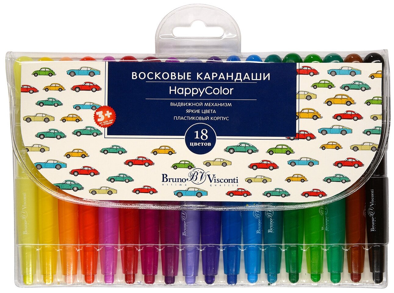 Мелки воск. 18цв пласт.выкруч."HAPPYCOLOR"31-0011 Bruno Visconti