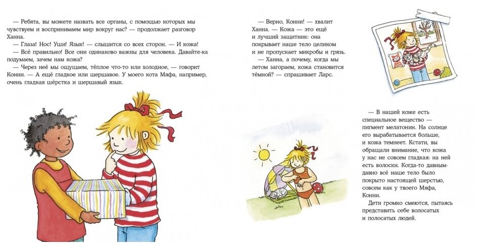 О покупке книги Конни и тело я долго думала: стоит ли покупать такую книгу для детей дошкольного возраста, я читала текст в электронном виде, смотрела картинки из книги в интернете. После изучения всей этой информации, я поняла, что купить можно и даже нужно. И не пожалела о покупке. Информация изложена весьма деликатно, как раз для малышей. Иллюстрации и бумага как всегда отличные, твердый переплет, читаем с удовольствием