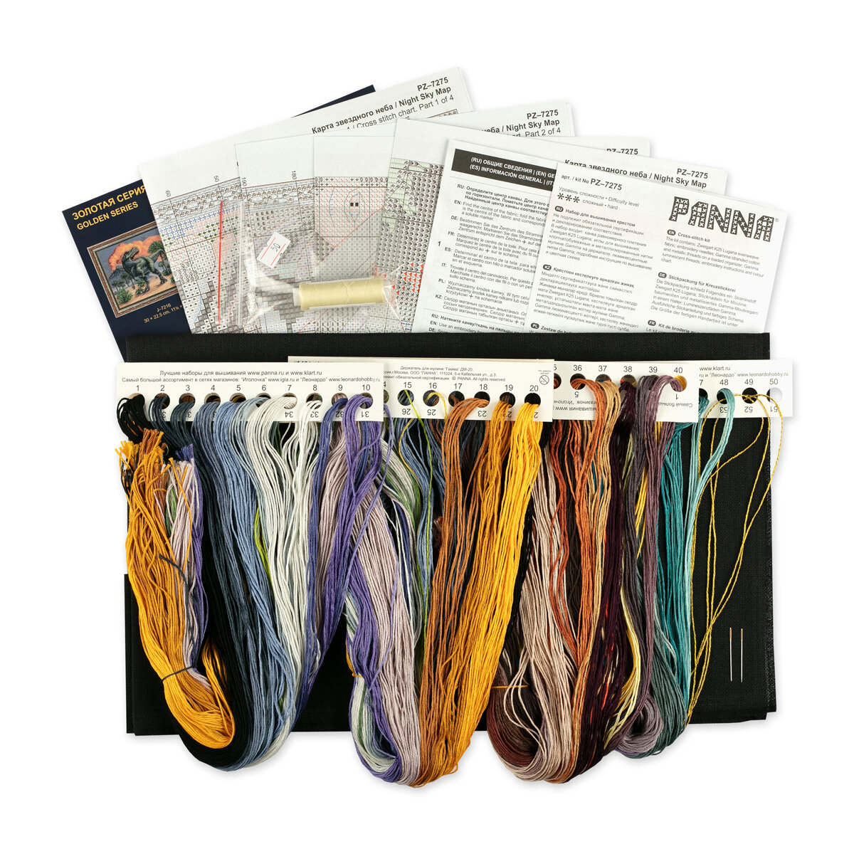 | В набор входит | канва К27 Linda черного цвета, мулине, игла, цветная схема, инструкция, Люминесцентные нитки |