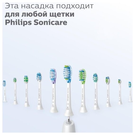 Насадка легко снимается и устанавливается на щетку, значительно упрощая процесс ее очистки и обслуживания. Совместимо со всеми взрослыми щетками Philips Sonicare.