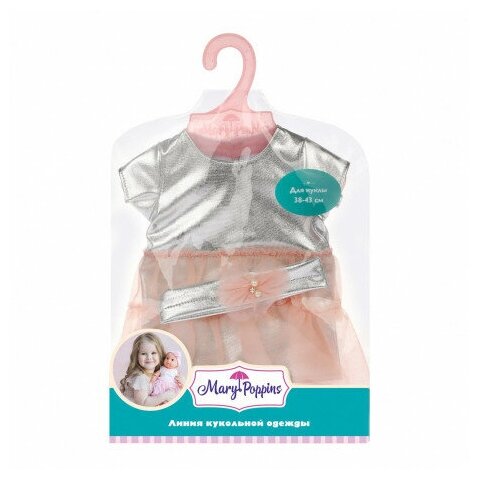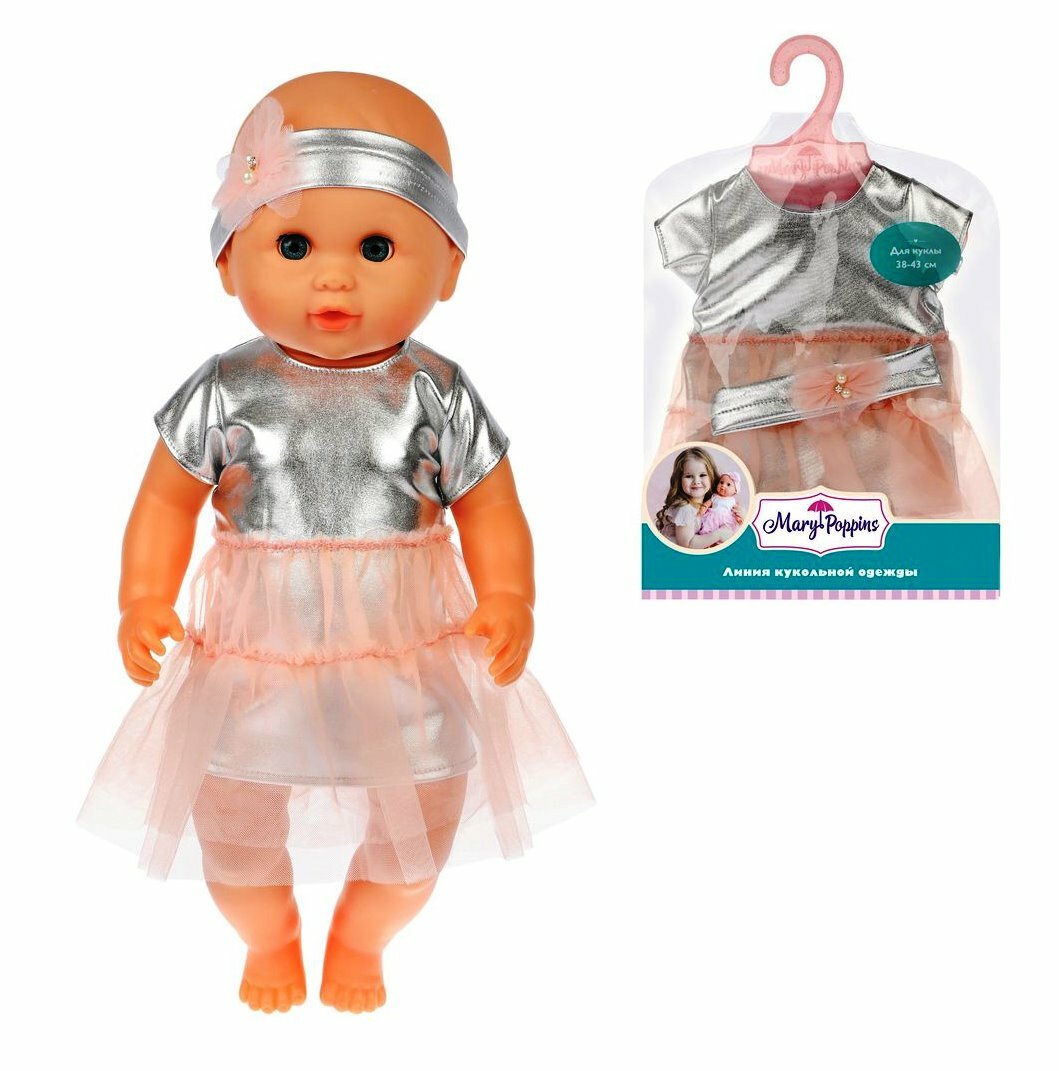 Mary Poppins Платье с повязка для кукол 38-43 см 452160 серебристый/розовый Одежда для куклы платье с повязкой Модница 38-43 см