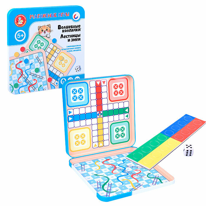 Перед Вами сразу две увлекательные настольные игры – «Волшебные колпачки» и «Лестницы и змеи». Играть можно как вдвоем, так и небольшой компанией.