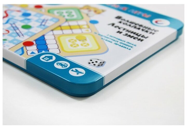 Играйте дома и в дороге, ведь магнитные фишки крепко держатся на металлическом поле. А еще их так удобно хранить в жестяной коробочке!