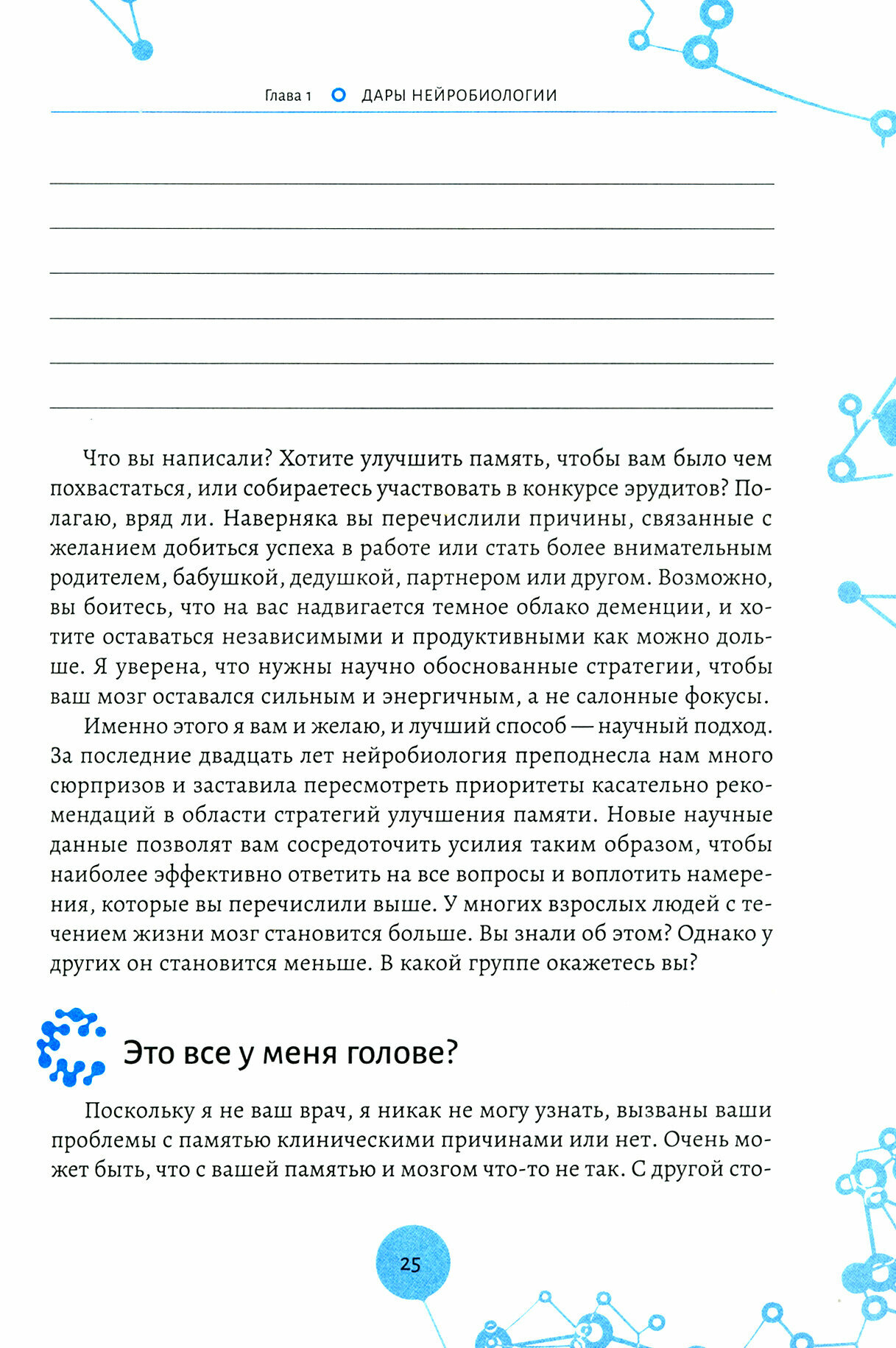 работой мозга. Рекомендую не быть как я, и всё же ответить на все вопросы и написать то, что просят в книге- это тоже часть тренинга!