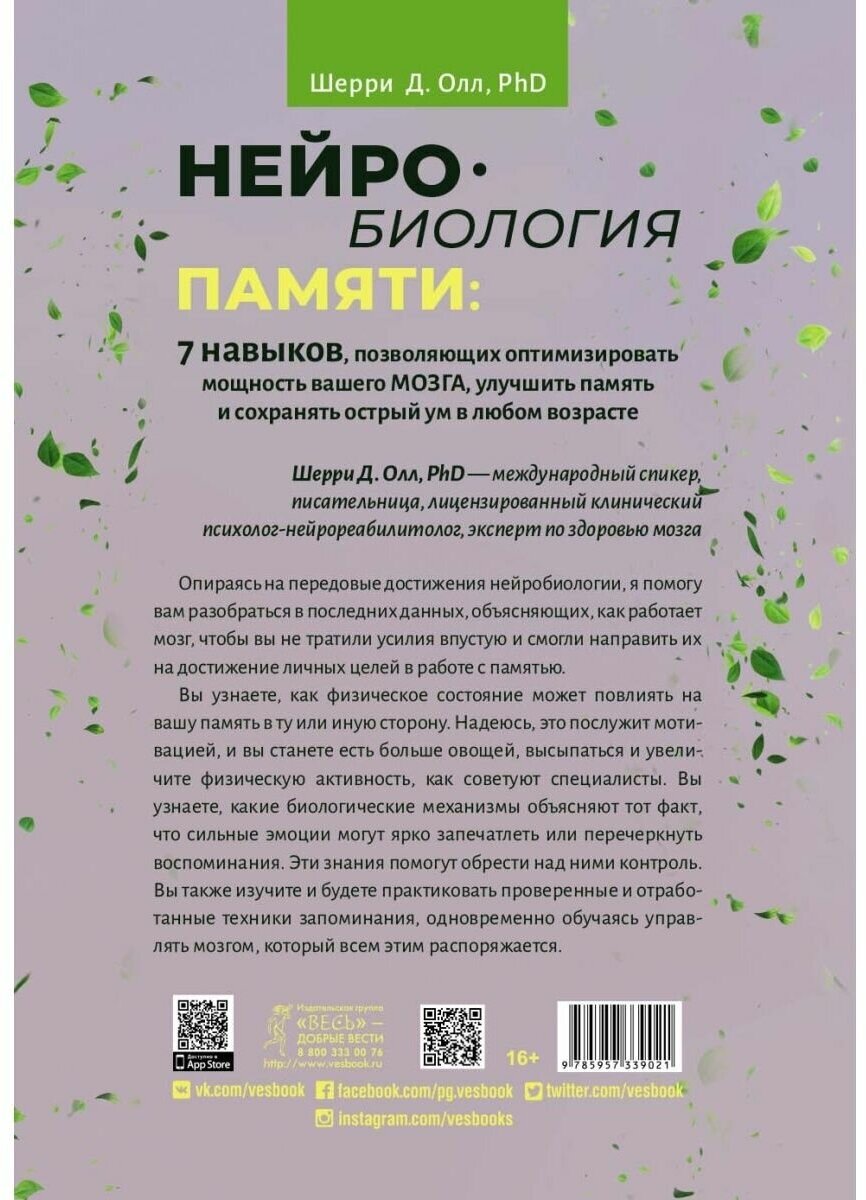 Нейробиология памяти. 7 навыков позволяющих оптимизировать мощность вашего мозга (Шерри Д. Олл); ИГ "Весь", 2021