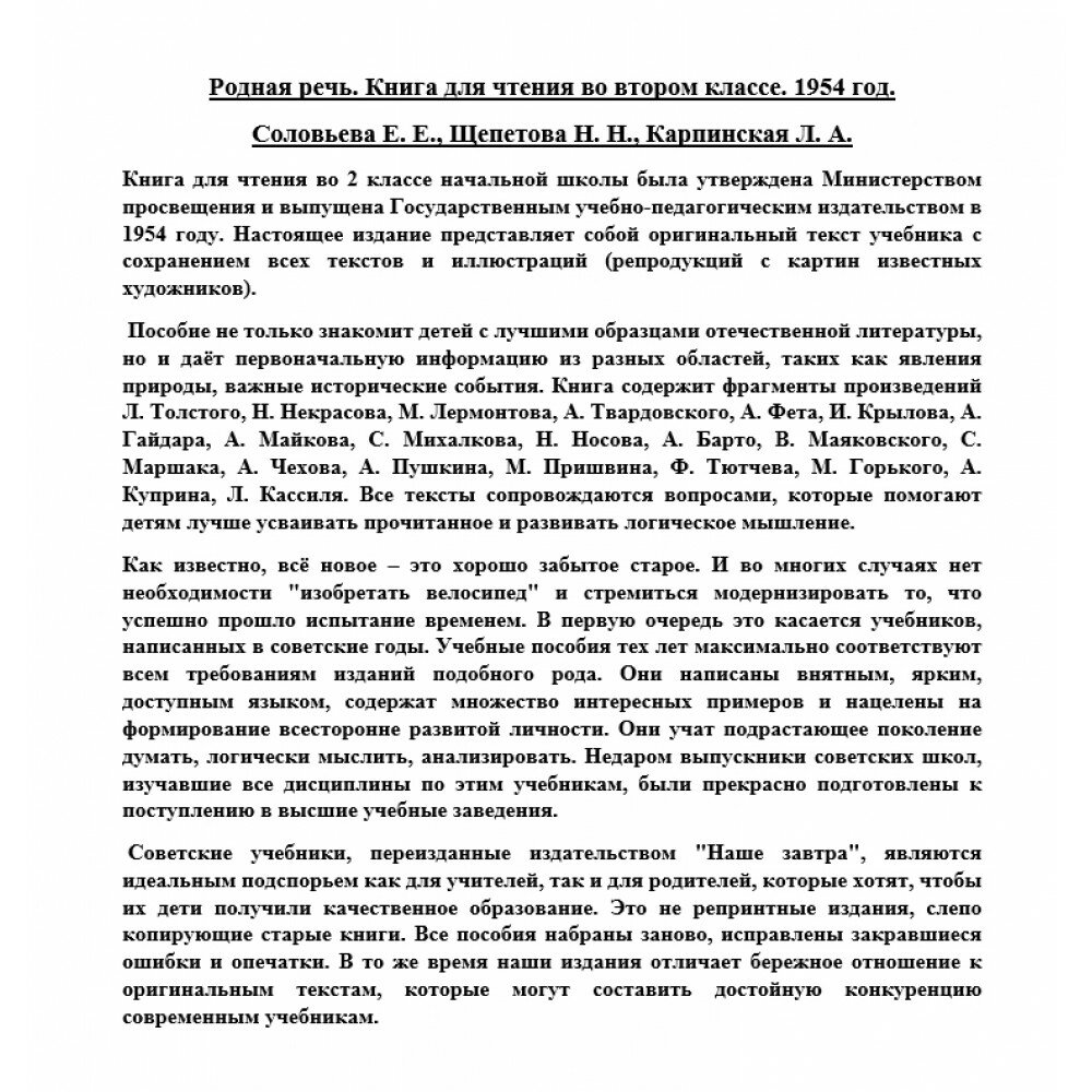 Сервис сравнения цен СкидкаГИД предлагает сравнить цены на товар «Книга: Родная речь. Книга для чтения во 2 классе. 1954 год (Соловьева Евгения Егоровна); Наше Завтра, 2022»