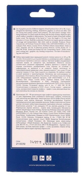 Чернографитовые карандаши GraphixPro бренда BrunoVisconti®. Набор состоит из 12 карандашей различной степени твердости: 2Н-9В. Покрытие карандашей - лак на водной основе - это бережное отношение к окружающей среде и здоровью детей. Корпус имеет эргономичную трехгранную форму, удобную для длительного использования. Диаметр грифеля 3,0 мм. Упакованы в картонную коробку.