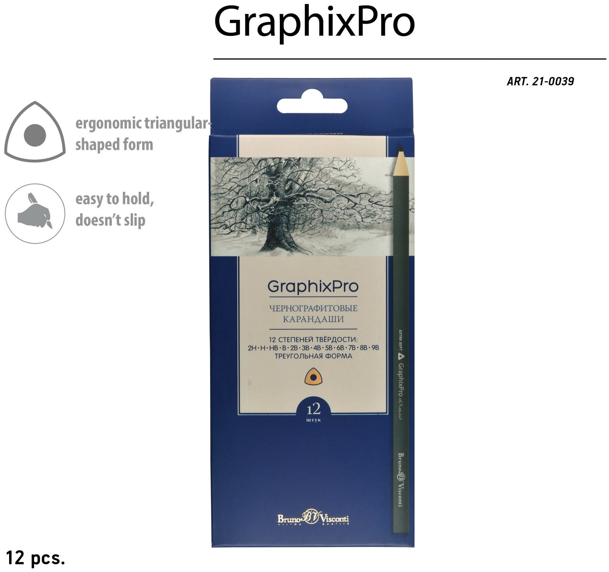 Набор карандашей ч/гр 12шт "GraphixP"2H-9B21-0039 Bruno Visconti