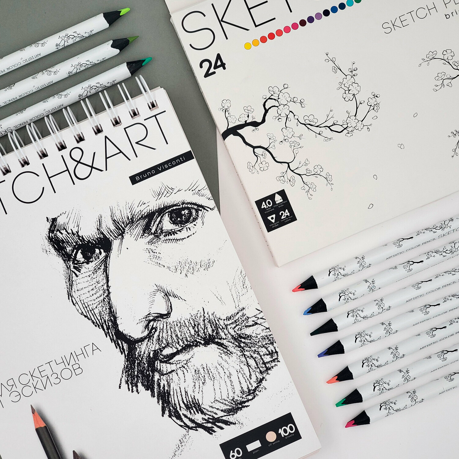 Великолепный набор скетч-карандашей SKETCH&ART. В белой картонной коробке с покрытием SoftTouch собраны 24 выразительных цвета.
