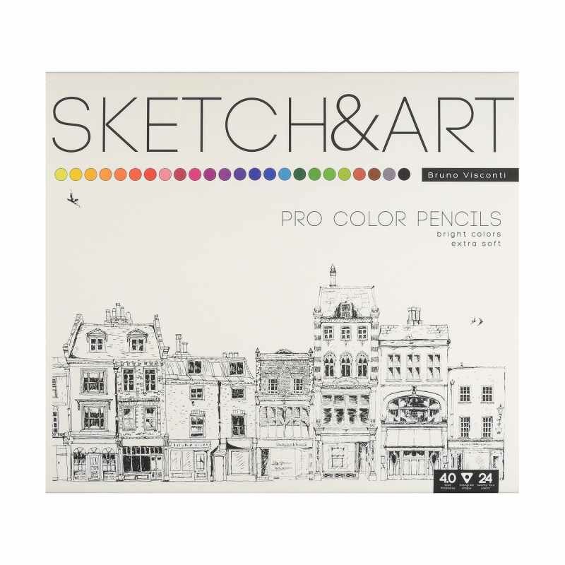 Набор цветных скетч карандашей трехгранной формы серии «SKETCH&ART" бренда BrunoVisconti®, упаковка 24 цвета. Карандаши выполнены в трехгранном корпусе из термообработанной липы. Грифель категории А состоит из высококачественных пигментов ярких оттенков. Вы получите удовольствие от работы с этими карандашами, у них мягкое скольжение грифеля и сочные цвета. Покрытие карандашей -лак на водной основе - это бережное отношение к окружающей среде и здоровью детей. Карандаши упакованы в металлическую коробку с пластиковым ложементом, стильную и удобную для хранения и транспортировки.