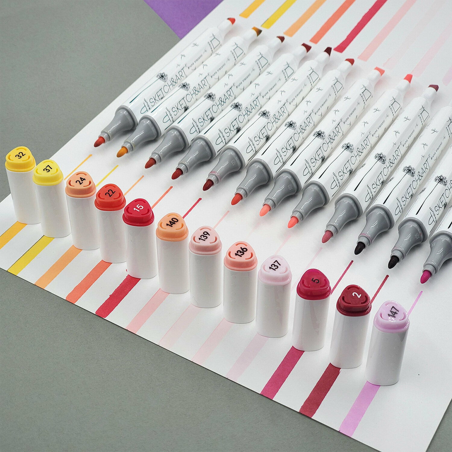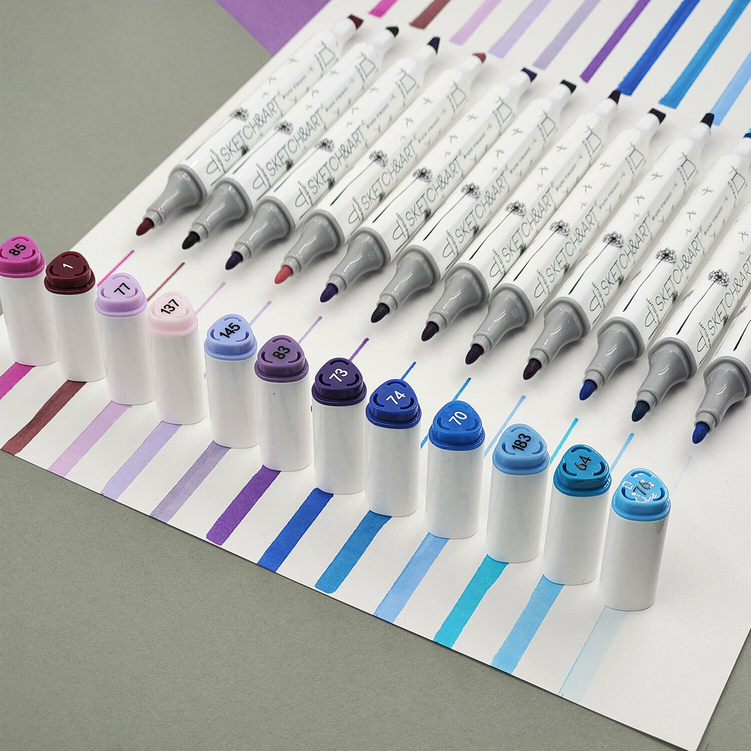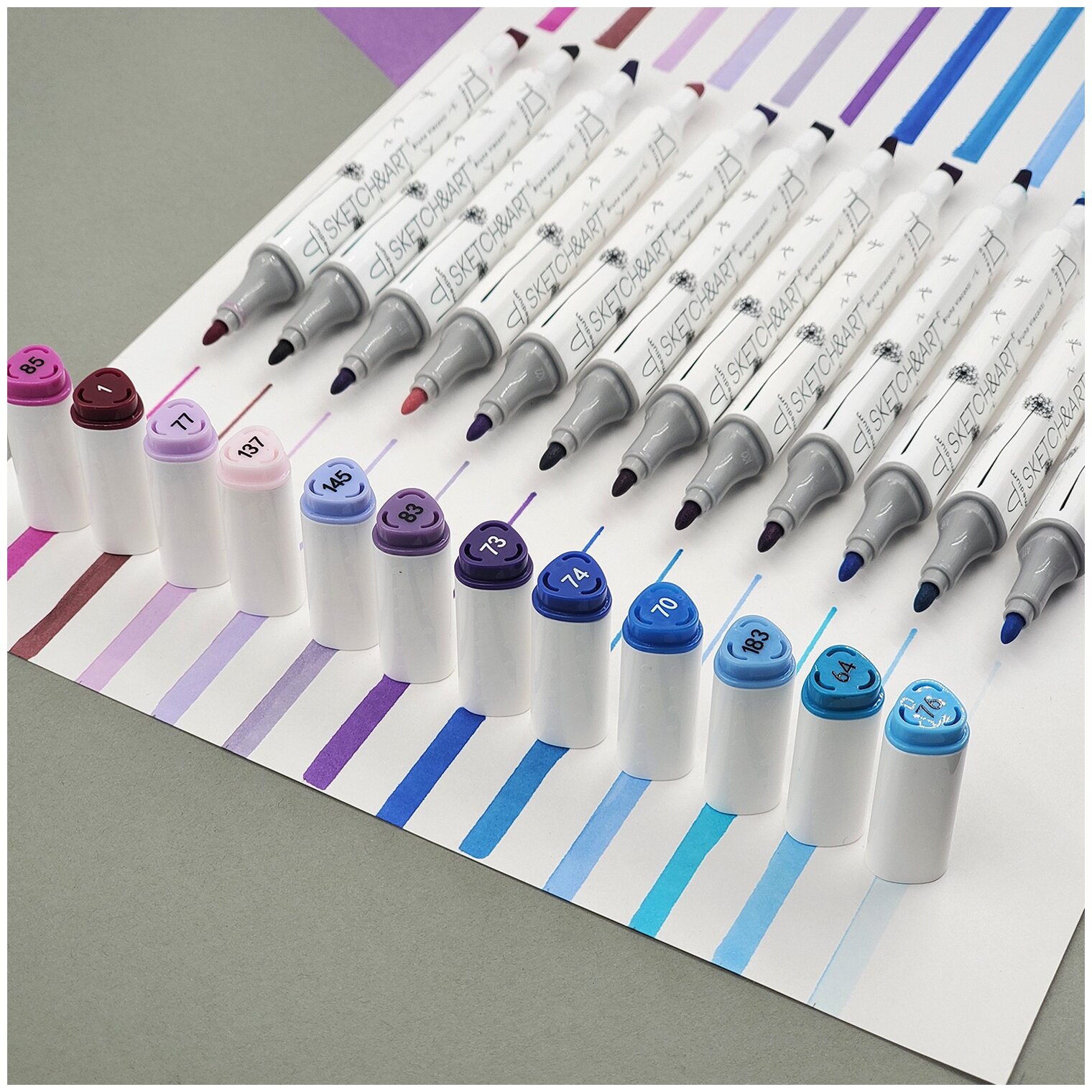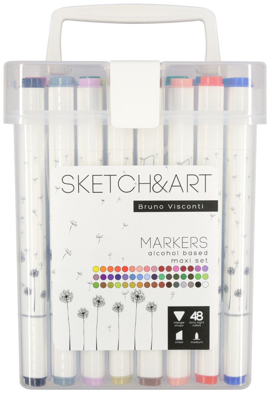 Необычные скетчмаркеры из серии SKETCH&ART имеют эргономичную треугольную форму и дизайнерский рисунок на корпусе. Два классических наконечника: пулевидный (от 1 мм) и клиновидный (5 мм). Большой запас чернил на спиртовой основе со сроком хранения 3 года. Идеально прилегающие колпачки обеспечаивают долгий срок службы. Главное, не забывайте их закрывать!