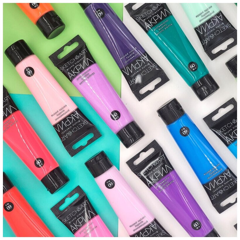 Акриловые краски «Bruno Visconti» в тубах по 60 мл представлены широкой палитрой цветов, включающей в себя не только классические оттенки, но и металлики, и неоновые краски, и краски с перламутровым отливом, которые незаменимы в декоративно-прикладном творчестве.