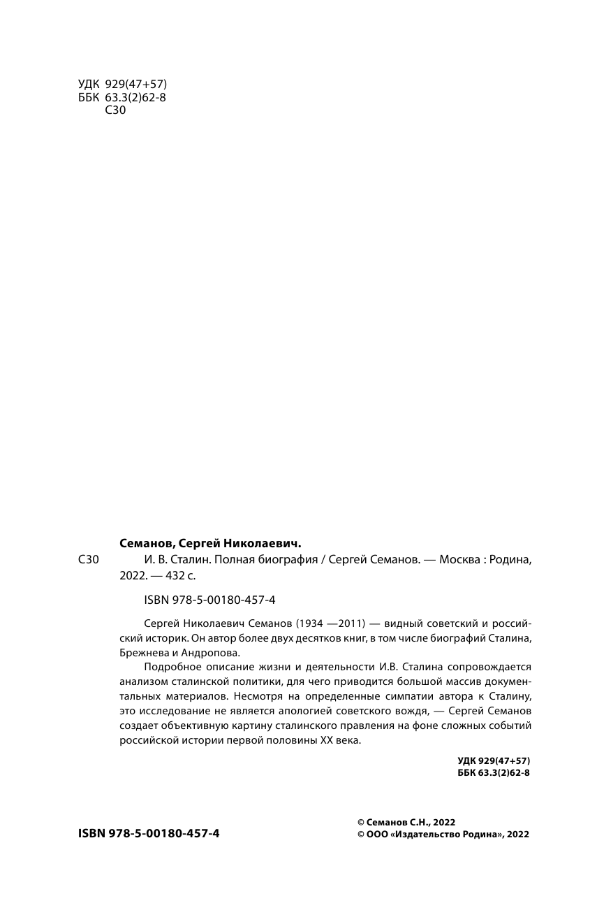 Сервис сравнения цен СкидкаГИД предлагает сравнить цены на товар «Книга: И.В. Сталин. Полная биография (Сергей Николаевич Семанов); Родина, 2022»