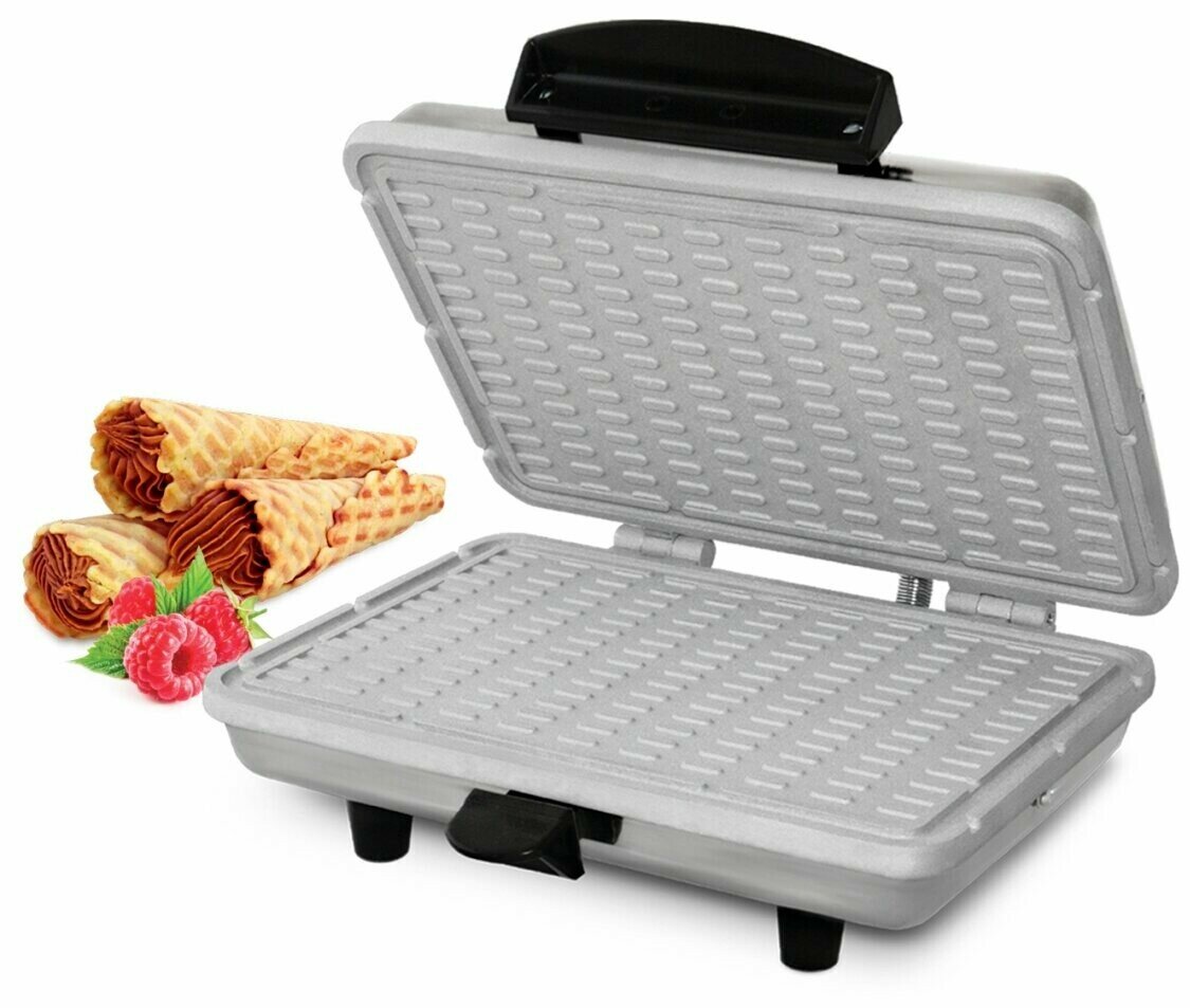| Прочие особенности и свойства | Нагревательные элементы из пищевого алюминия.,Наличие двойной системы защиты от перегрева.,Увеличенная высота нагревательных платформ обеспечивает более стабильную температуру пропекания, за счет этого происходит равномерный и быстрый процесс выпечки. Вафельница предназначена для вафель, трубочек с любыми наполнителями, в том числе и для мороженого. |