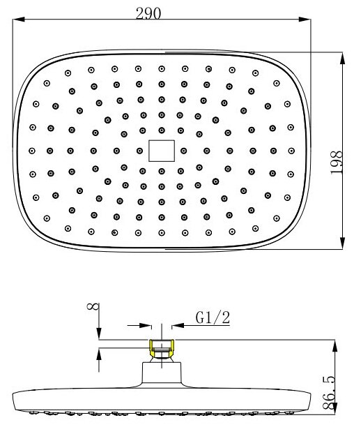 Верхний душ D&K DC1004863. Превосходный дизайн изделия дополнит большинство ванных комнат в современном стиле.