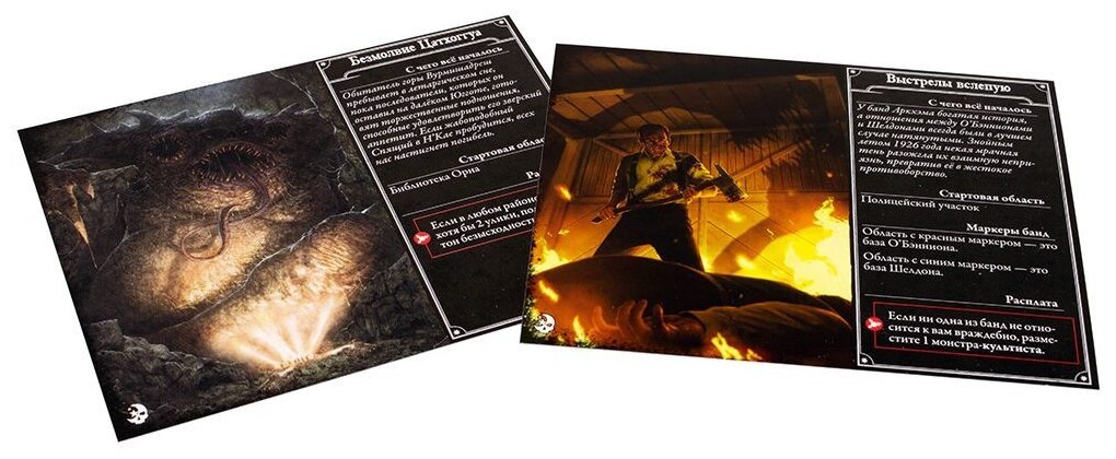 Время это легко будет распознатьВ дополнении "Во мраке ночи" вас ждет еще два сценария к игре "Ужас Аркхэма". Вам придется сразиться с тайными культами и организованной преступностью, которая неустанно трудится под покровом тьмы. Главные проблемы города, впавшего в безумие, теперь не только ужас глубин и неописанные чудища из других миров, оккультисты, трудящиеся на благо своих сумрачных господ, преступники, почуствующие ветер перемен - все это, казалось бы, просто люди, которые принесут вам множество проблем.