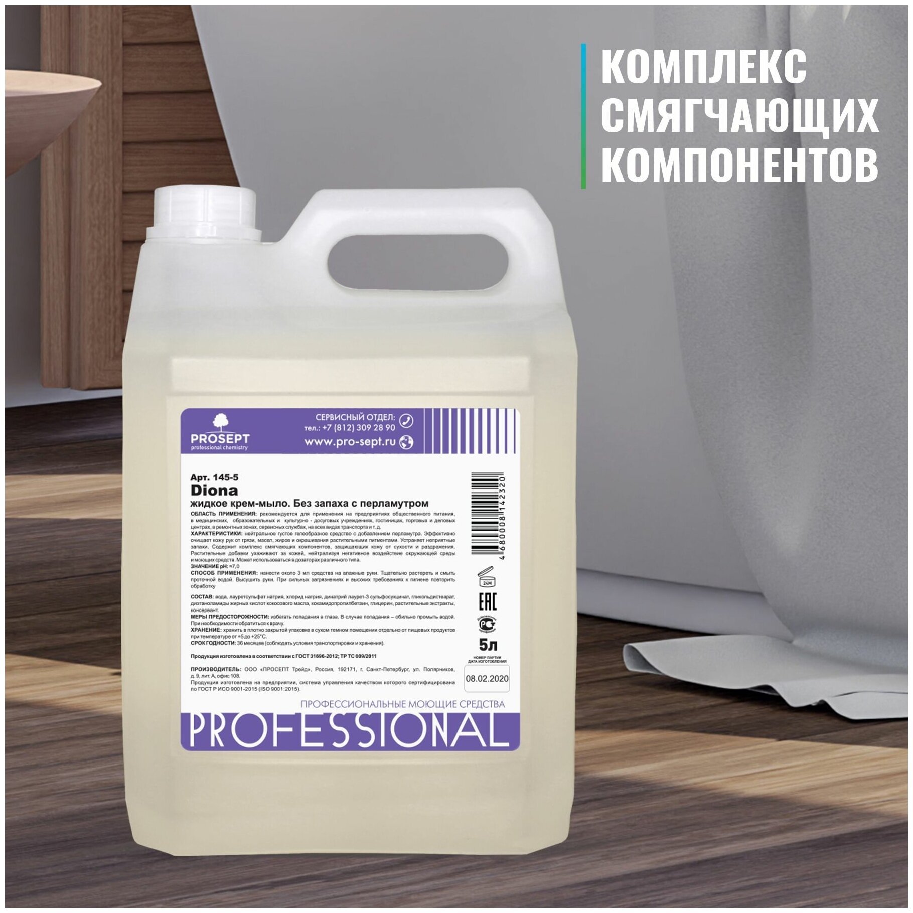 Жидкое гель-мыло Prosept Diona с перламутром без цвета и без запаха 5 л Diona Жидкое гель-мыло с перламутром без цвета и без запаха ПЭТ 5 л